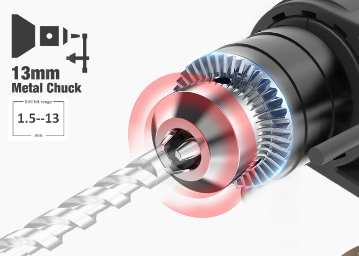 1 auxiliary handle 1 plastic depth gauge 1 chuck key